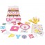 Janod okrasitveni komplet Princess oz. Princeska, vsebuje vse, kar potrebujete, za praznovanje rojstnega dne s prijateljčki. Od papirnatih krožnikov, kozarčkov, namiznega prta, okrasitvenih zastavic in napisa Happy Birthday, do svečk in prtičkov ter... obilico nasmehov in veliko domišlije! :)